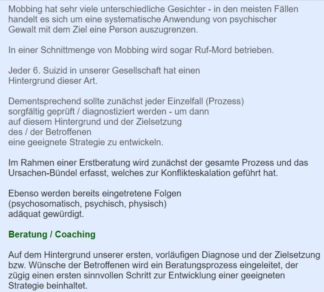 der unabhängigen Arbeitsplatzkonflikt- und Mobbingberatungsstellen / Experten in Ihrer Region