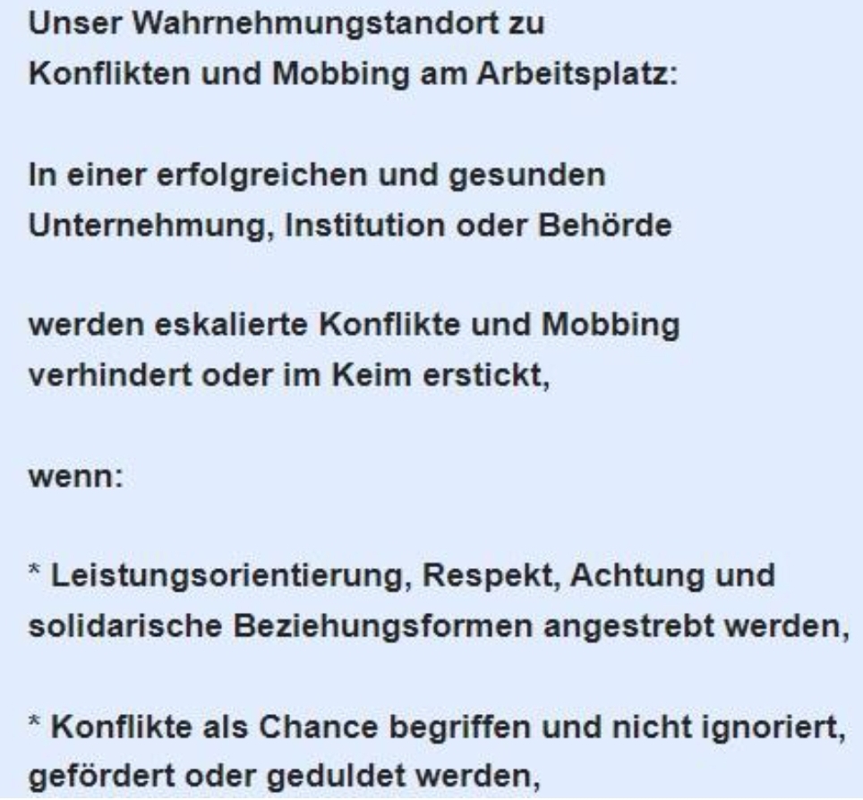 zum Thema: "Mobbing / Konflikte am Arbeitsplatz"